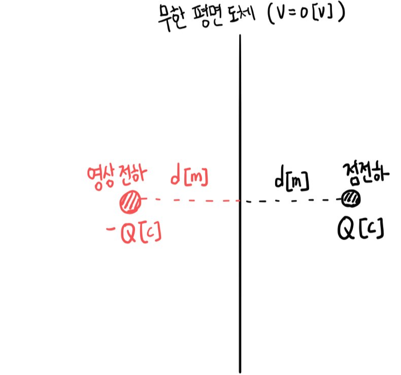 ① 무한 평면 도체와 점전하 사이에 작용하는 전기력